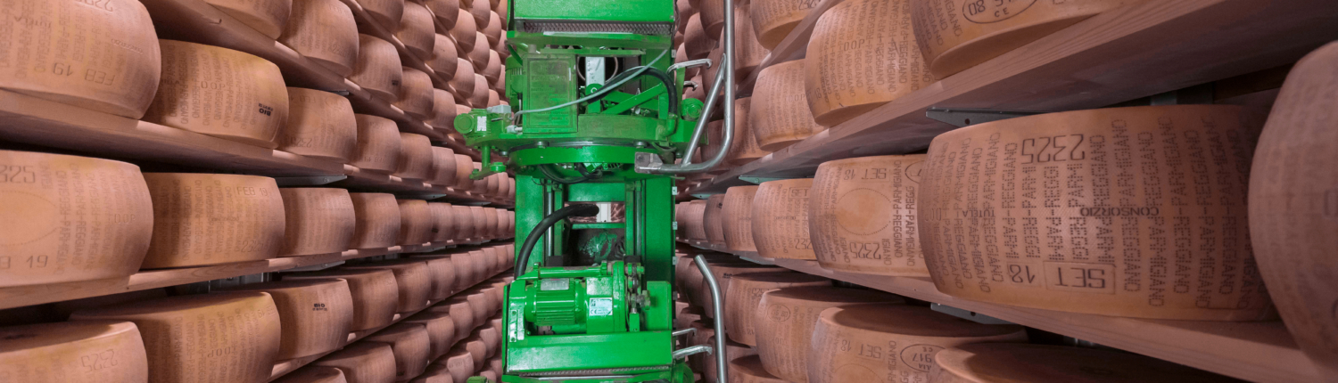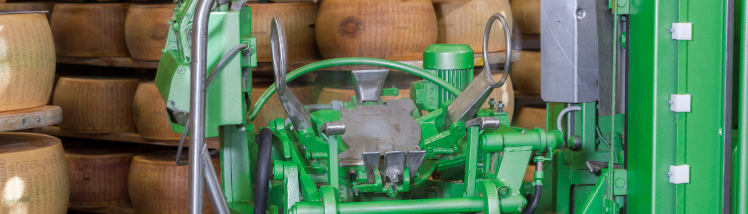 P.R.A. è specificamente progettata per la pulitura ed il rivoltamento delle forme di formaggio, direttamente in scalera, con diametro compreso tra 34 e 49 cm ed un’altezza compresa tra 22 e 26 cm, lavorando con forme di Parmigiano Reggiano®, Grana Padano® e Trentingrana®.